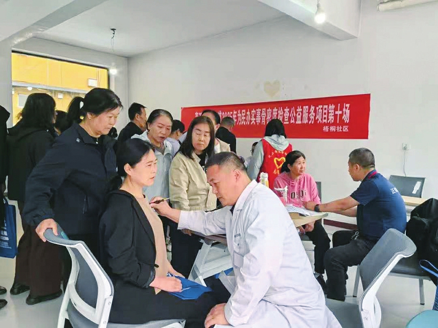 图⑥:离石区凤山街道邀请医务工作者走进梧桐社区为居民免费开展检查。