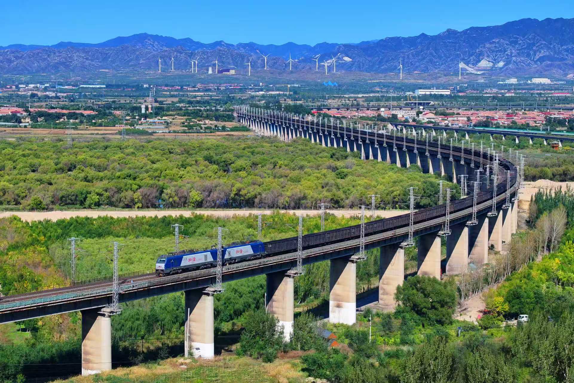 中车大同公司HXD2型机车通过丰沙线落坡岭铁路桥 杨政 摄