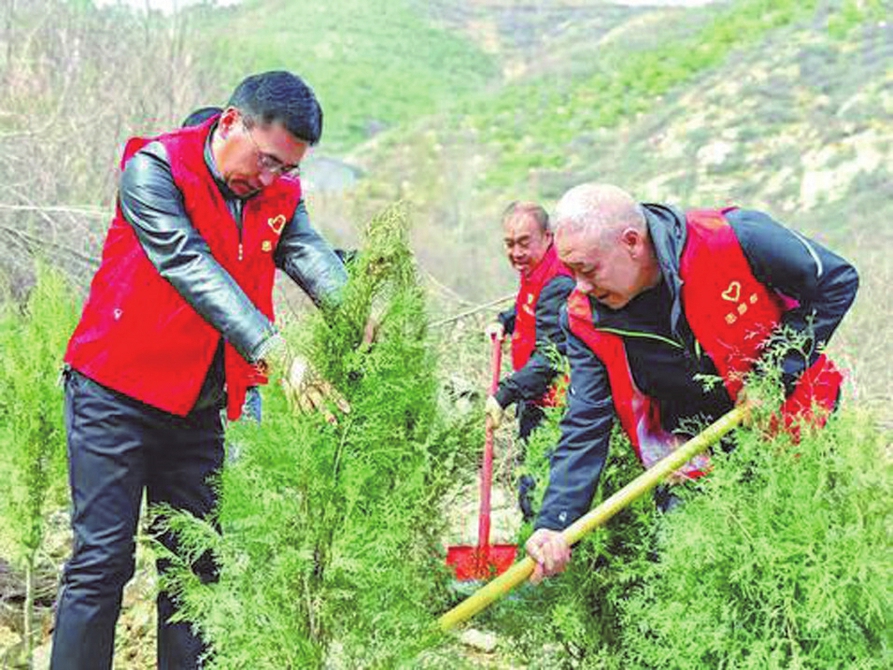 汾阳市市场监督管理局老干部党支部组织老干部志愿者前往石盘山开展春季义务植树主题党日活动。张建芬摄