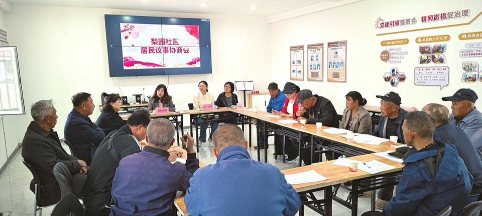 大同市西花园街道梨园社区召开居民议事会。闫书敏摄