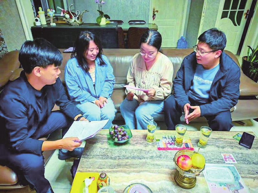 原平市组织党建办工作人员入户走访。本报通讯员摄