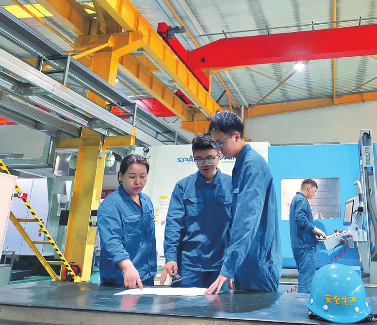 精密机械加工分厂“提质增效突击队”研究机床工装夹具。