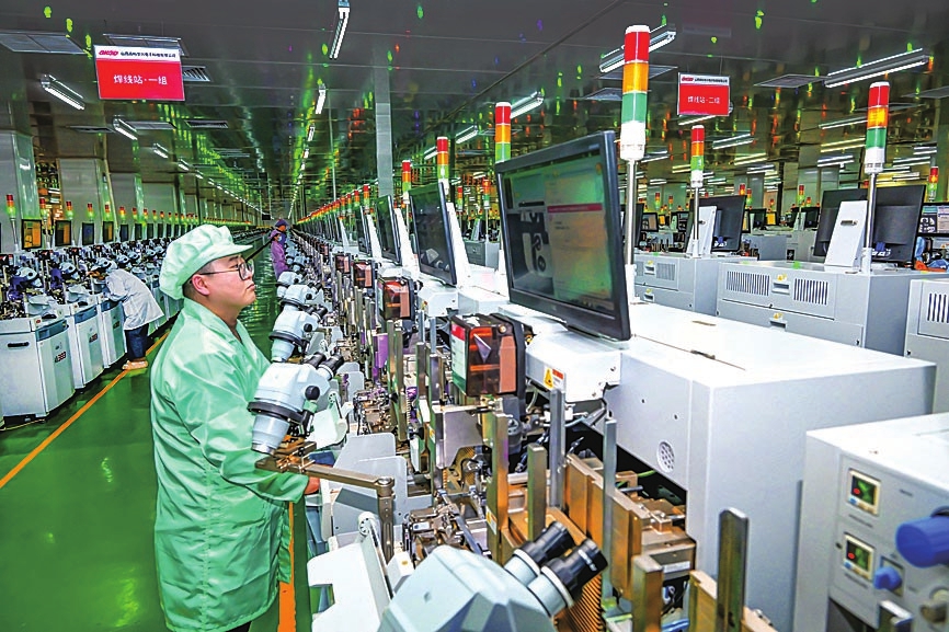 1月4日,山西高科华兴电子科技有限公司生产车间内,工人开足马力赶制订单,为全年发展开好头、起好步。梁栋摄
