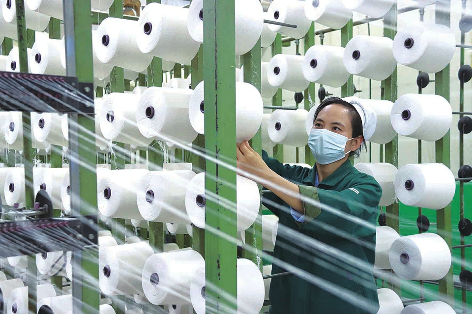 1月4日,山西绿洲纺织有限责任公司内,工人正在赶制出口订单。新年首个工作日,该公司开足马力加紧生产,确保完成订单任务。陈来全摄